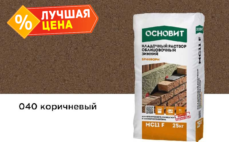 Кладочный раствор ОСНОВИТ БРИКФОРМ МС11 F зимний предназначен для кладки стен из облицовочного кирпича с водопоглощением до 12% с возможностью расшивки швов в момент укладки при температуре окружающей среды и основания от -10 до + 10°С.