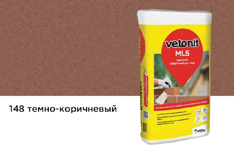 Цветной кладочный раствор weber.vetonit МЛ 5, темно-коричневый, №148, 25 кг