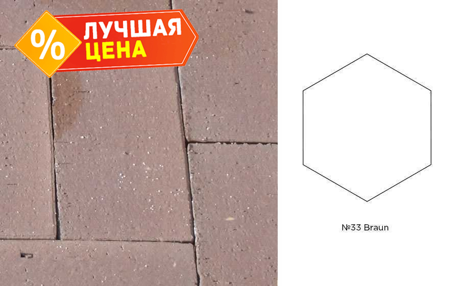 Компания КирпичПРО предлагает своим клиентам продукцию крупнейших кирпичных заводов. Мы осуществляем свою деятельность на территории Геленджика и Краснодарского края. Клинкерная брусчатка Muhr №33 Braun, гексагон 200*52 мм купить по низкой цене за шт/упаковку можно связавшись с нами по телефону или оставив заявку. Производитель данной модели - Muhr, она имеет цвет - Коричневый, при этом размеры такие - Коричневый. Без фаски. Звоните и заказывайте!