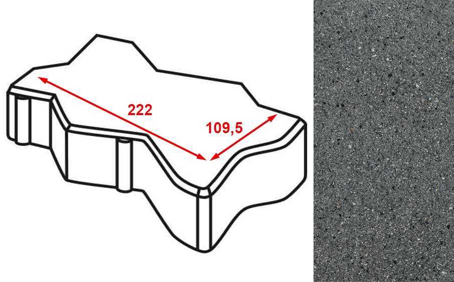 Плитка тротуарная Готика Granite FERRO, зигзаг/волна, Исетский 222х109,5х60 мм