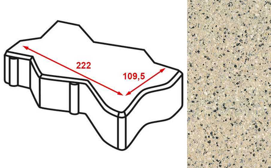 Плитка тротуарная Готика Granite FERRO, зигзаг/волна, Жельтау 222х109,5х60 мм