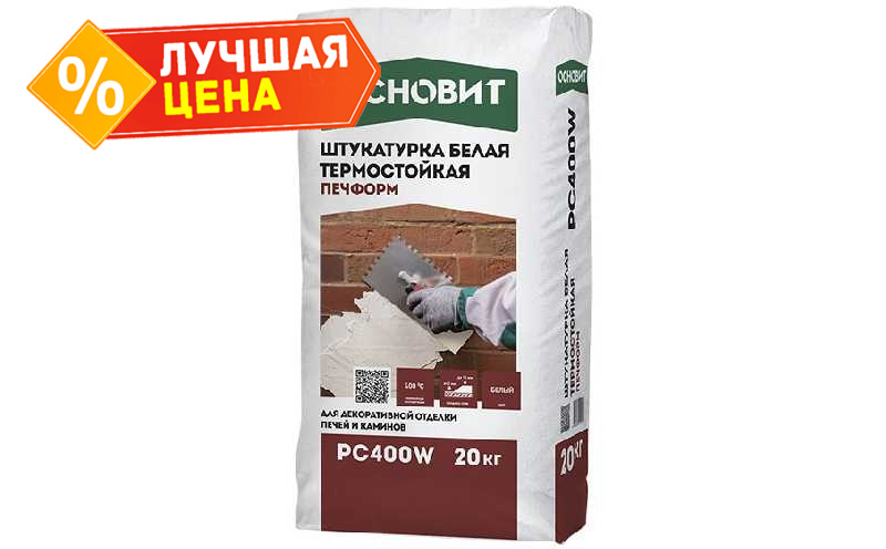 Термостойкая штукатурка ОСНОВИТ ПЕЧФОРМ PC400 W, белая, 20 кг